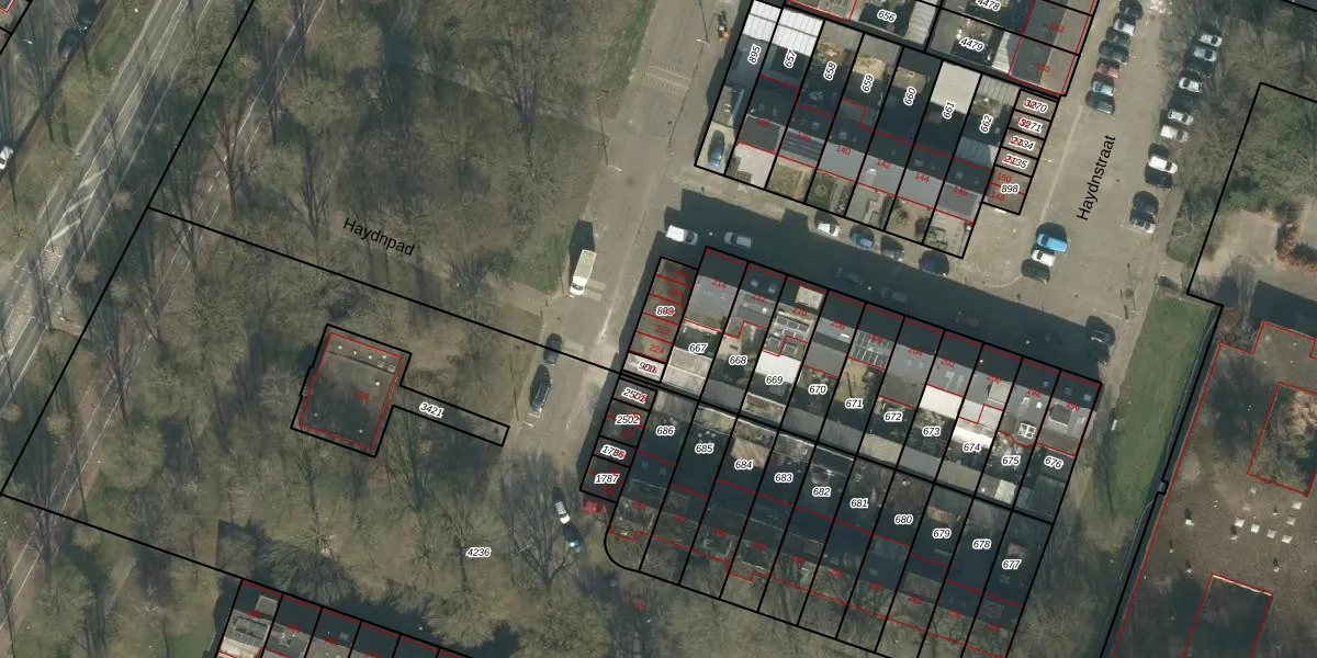 Het perceel waarop Haydnstraat 222 staat heeft een oppervlakte van 91 m². Dit is een klein perceel. De perceeloppervlakte wordt geregistreerd door het Kadaster. Gedetailleerde informatie over de maten van dit perceel kunt u vinden in het rapport Kadastrale kaart met maatvoering van Haydnstraat 222.