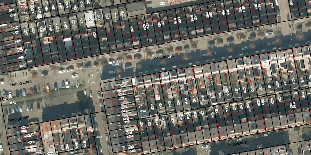 Het perceel waarop Hertogstraat 54 staat heeft een oppervlakte van 152 m². Dit is een middelgroot perceel. De perceeloppervlakte wordt geregistreerd door het Kadaster. Gedetailleerde informatie over de maten van dit perceel kunt u vinden in het rapport Kadastrale kaart met maatvoering van Hertogstraat 54.