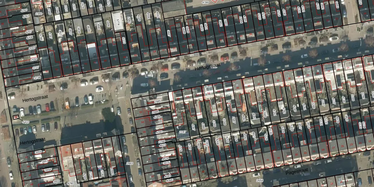Het perceel waarop Hertogstraat 56 staat heeft een oppervlakte van 142 m². Dit is een middelgroot perceel. De perceeloppervlakte wordt geregistreerd door het Kadaster. Gedetailleerde informatie over de maten van dit perceel kunt u vinden in het rapport Kadastrale kaart met maatvoering van Hertogstraat 56.