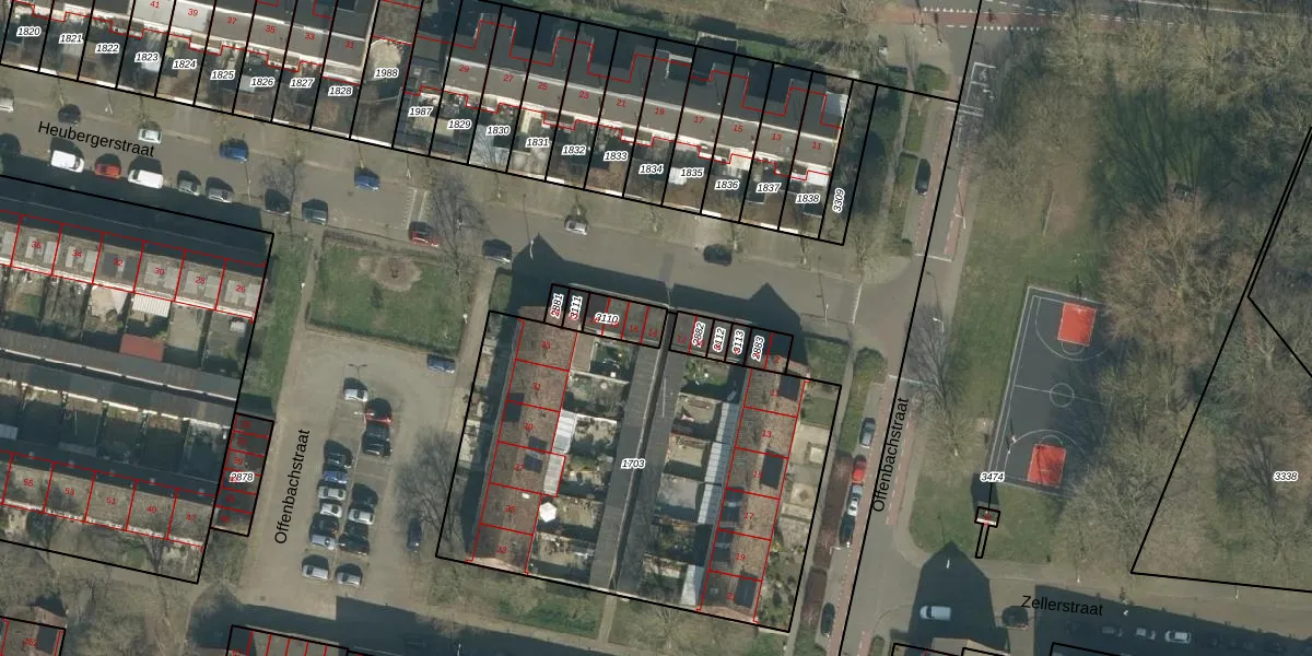 Het perceel waarop Heubergerstraat 14 staat heeft een oppervlakte van 72 m². Dit is een klein perceel. De perceeloppervlakte wordt geregistreerd door het Kadaster. Gedetailleerde informatie over de maten van dit perceel kunt u vinden in het rapport Kadastrale kaart met maatvoering van Heubergerstraat 14.