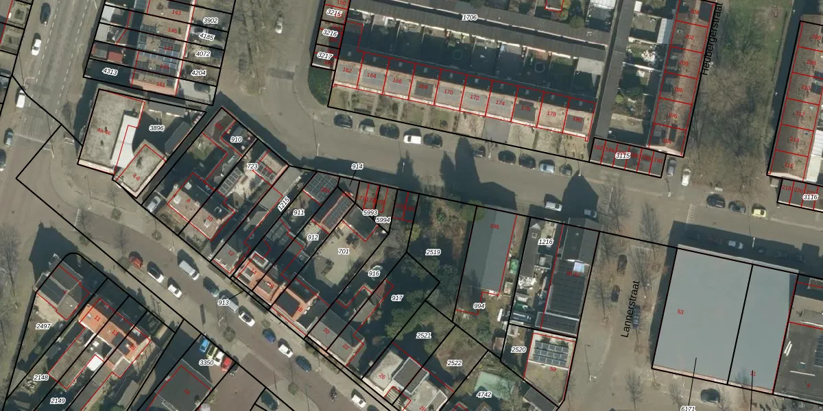 Het perceel waarop Heubergerstraat 181 staat heeft een oppervlakte van 255 m². Dit is een middelgroot perceel. De perceeloppervlakte wordt geregistreerd door het Kadaster. Gedetailleerde informatie over de maten van dit perceel kunt u vinden in het rapport Kadastrale kaart met maatvoering van Heubergerstraat 181.