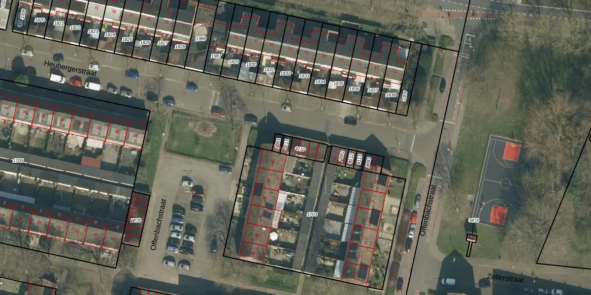 Het perceel waarop Heubergerstraat 20 staat heeft een oppervlakte van 72 m². Dit is een klein perceel. De perceeloppervlakte wordt geregistreerd door het Kadaster. Gedetailleerde informatie over de maten van dit perceel kunt u vinden in het rapport Kadastrale kaart met maatvoering van Heubergerstraat 20.