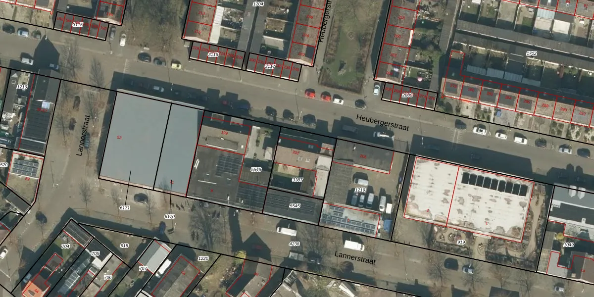 Gebruik de zoekbalk of klik op een perceel voor informatie over de adressen binnen dit perceel.