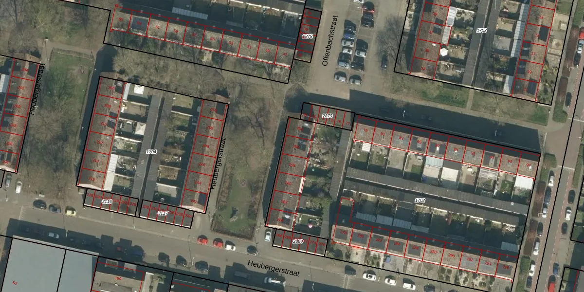 Het perceel waarop Heubergerstraat 256 staat heeft een oppervlakte van 4082 m². Dit is een zeer groot perceel. De perceeloppervlakte wordt geregistreerd door het Kadaster. Gedetailleerde informatie over de maten van dit perceel kunt u vinden in het rapport Kadastrale kaart met maatvoering van Heubergerstraat 256.
