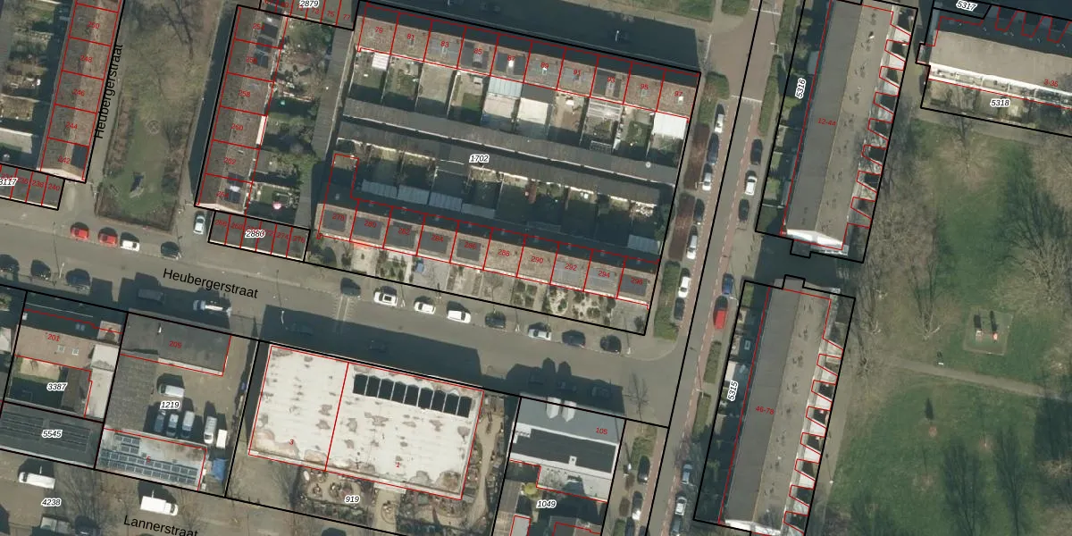 Het perceel waarop Heubergerstraat 290 staat heeft een oppervlakte van 4082 m². Dit is een zeer groot perceel. De perceeloppervlakte wordt geregistreerd door het Kadaster. Gedetailleerde informatie over de maten van dit perceel kunt u vinden in het rapport Kadastrale kaart met maatvoering van Heubergerstraat 290.