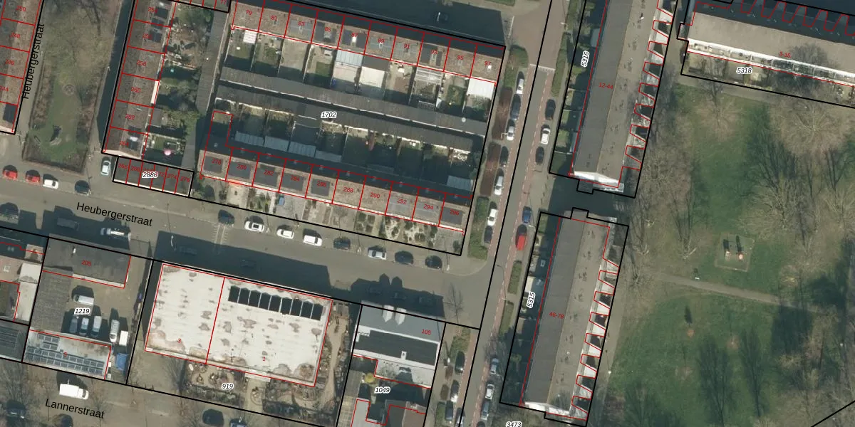 Het perceel waarop Heubergerstraat 294 staat heeft een oppervlakte van 4082 m². Dit is een zeer groot perceel. De perceeloppervlakte wordt geregistreerd door het Kadaster. Gedetailleerde informatie over de maten van dit perceel kunt u vinden in het rapport Kadastrale kaart met maatvoering van Heubergerstraat 294.