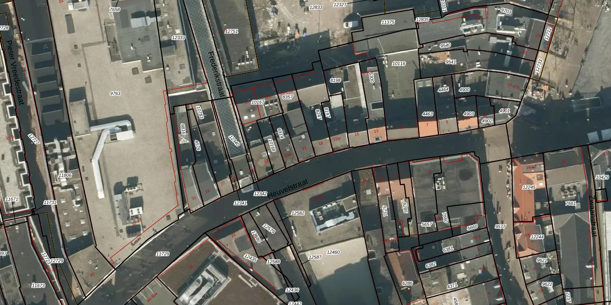 Heuvelstraat 21 is gelegen op kadastraal perceel TBG01M8357. Deze kadastrale aanduiding is uniek en wordt gebruikt door het Kadaster om eigendomsrechten en andere zakelijke rechten vast te leggen. Het perceel maakt onderdeel uit van de kadastrale gemeente Tilburg.