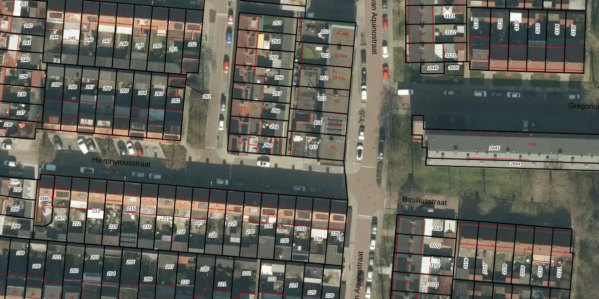 Het perceel waarop Hieronymusstraat 1 staat heeft een oppervlakte van 154 m². Dit is een middelgroot perceel. De perceeloppervlakte wordt geregistreerd door het Kadaster. Gedetailleerde informatie over de maten van dit perceel kunt u vinden in het rapport Kadastrale kaart met maatvoering van Hieronymusstraat 1.