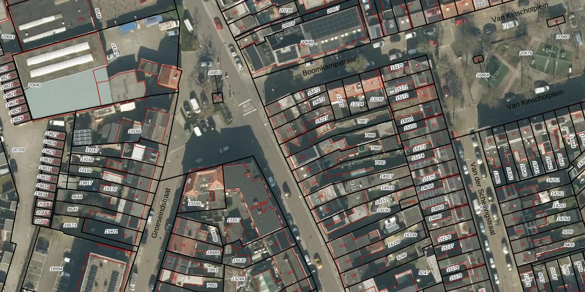 Gebruik de zoekbalk of klik op een perceel voor informatie over de adressen binnen dit perceel.