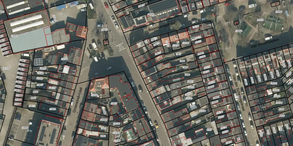 Gebruik de zoekbalk of klik op een perceel voor informatie over de adressen binnen dit perceel.