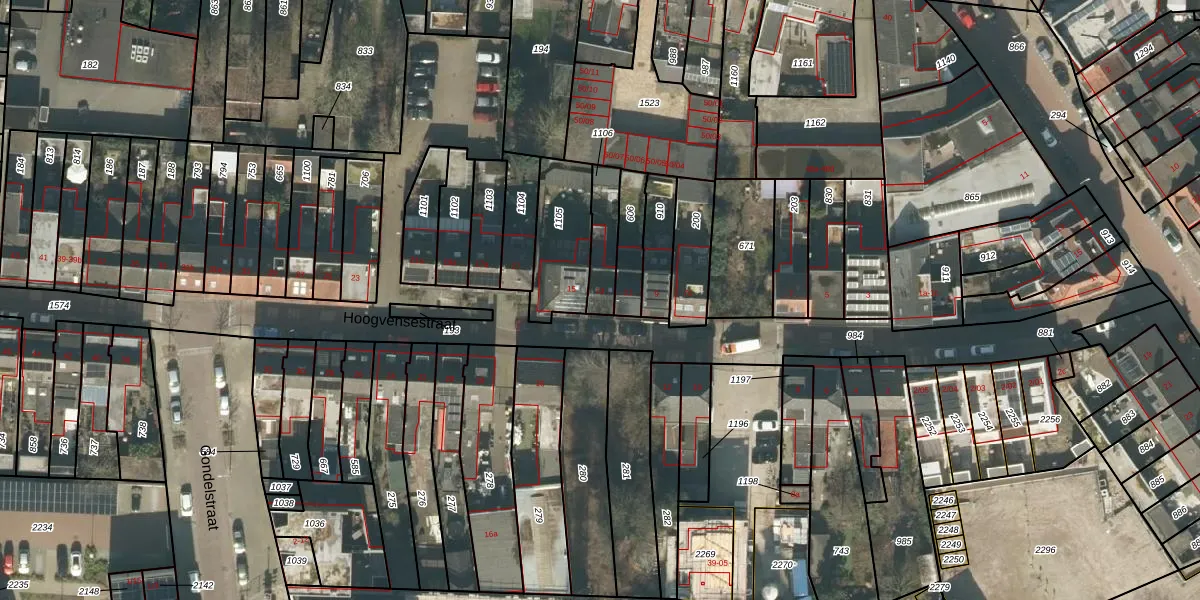Hoogvensestraat 13 is gelegen op kadastraal perceel TBG01X1106. Deze kadastrale aanduiding is uniek en wordt gebruikt door het Kadaster om eigendomsrechten en andere zakelijke rechten vast te leggen. Het perceel maakt onderdeel uit van de kadastrale gemeente Tilburg.