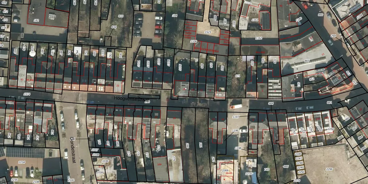 Het perceel waarop Hoogvensestraat 15 staat heeft een oppervlakte van 239 m². Dit is een middelgroot perceel. De perceeloppervlakte wordt geregistreerd door het Kadaster. Gedetailleerde informatie over de maten van dit perceel kunt u vinden in het rapport Kadastrale kaart met maatvoering van Hoogvensestraat 15.