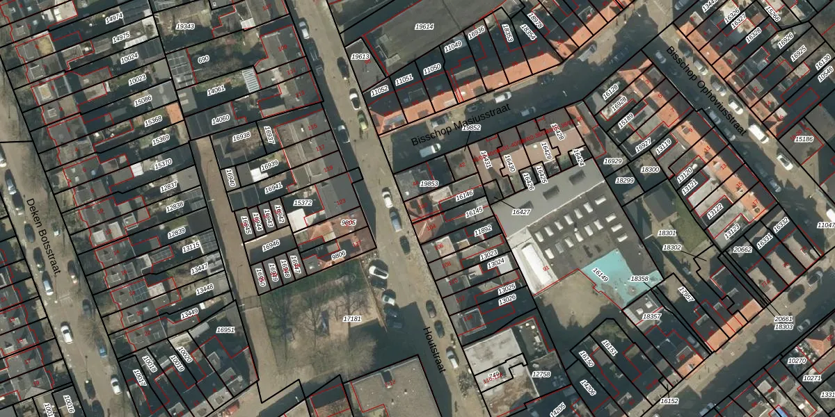 Houtstraat 102 is gelegen op kadastraal perceel TBG01N16146. Deze kadastrale aanduiding is uniek en wordt gebruikt door het Kadaster om eigendomsrechten en andere zakelijke rechten vast te leggen. Het perceel maakt onderdeel uit van de kadastrale gemeente Tilburg.