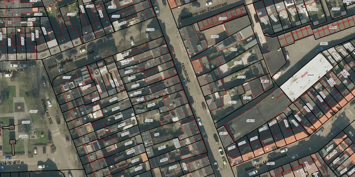 Houtstraat 103 is gelegen op kadastraal perceel TBG01N7383. Deze kadastrale aanduiding is uniek en wordt gebruikt door het Kadaster om eigendomsrechten en andere zakelijke rechten vast te leggen. Het perceel maakt onderdeel uit van de kadastrale gemeente Tilburg.