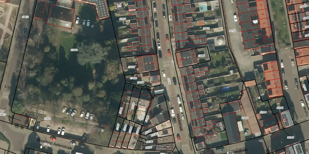 Houtstraat 29 is gelegen op kadastraal perceel TBG01N17078. Deze kadastrale aanduiding is uniek en wordt gebruikt door het Kadaster om eigendomsrechten en andere zakelijke rechten vast te leggen. Het perceel maakt onderdeel uit van de kadastrale gemeente Tilburg.