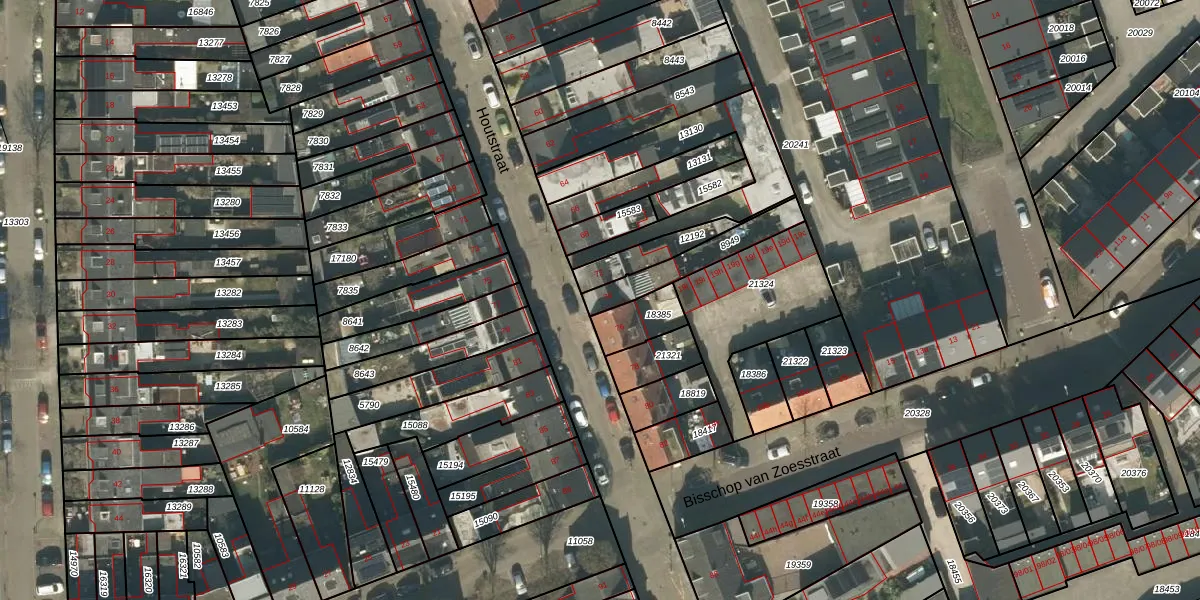 Houtstraat 74 is gelegen op kadastraal perceel TBG01N8949. Deze kadastrale aanduiding is uniek en wordt gebruikt door het Kadaster om eigendomsrechten en andere zakelijke rechten vast te leggen. Het perceel maakt onderdeel uit van de kadastrale gemeente Tilburg.
