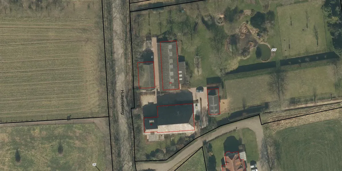 Het perceel waarop Hultenseweg 80 staat heeft een oppervlakte van 9930 m². Dit is een zeer groot perceel. De perceeloppervlakte wordt geregistreerd door het Kadaster. Gedetailleerde informatie over de maten van dit perceel kunt u vinden in het rapport Kadastrale kaart met maatvoering van Hultenseweg 80.