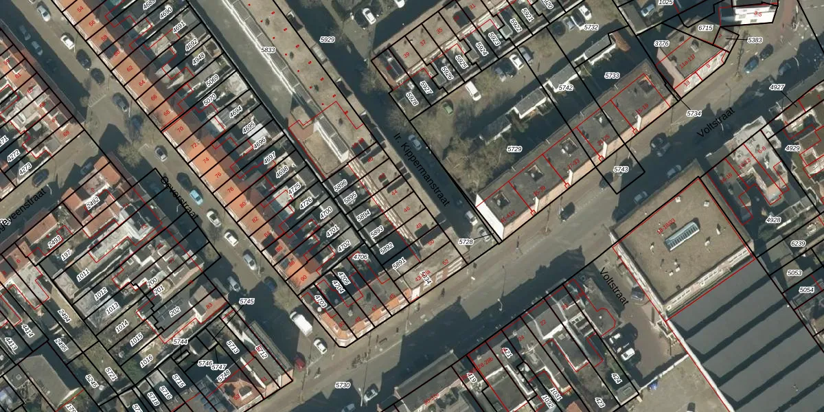 Het perceel waarop Ir. Kippermanstraat 46 staat heeft een oppervlakte van 85 m². Dit is een klein perceel. De perceeloppervlakte wordt geregistreerd door het Kadaster. Gedetailleerde informatie over de maten van dit perceel kunt u vinden in het rapport Kadastrale kaart met maatvoering van Ir. Kippermanstraat 46.