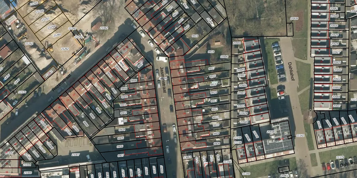 Jasmijnstraat 18 is gelegen op kadastraal perceel TBG01N9915. Deze kadastrale aanduiding is uniek en wordt gebruikt door het Kadaster om eigendomsrechten en andere zakelijke rechten vast te leggen. Het perceel maakt onderdeel uit van de kadastrale gemeente Tilburg.