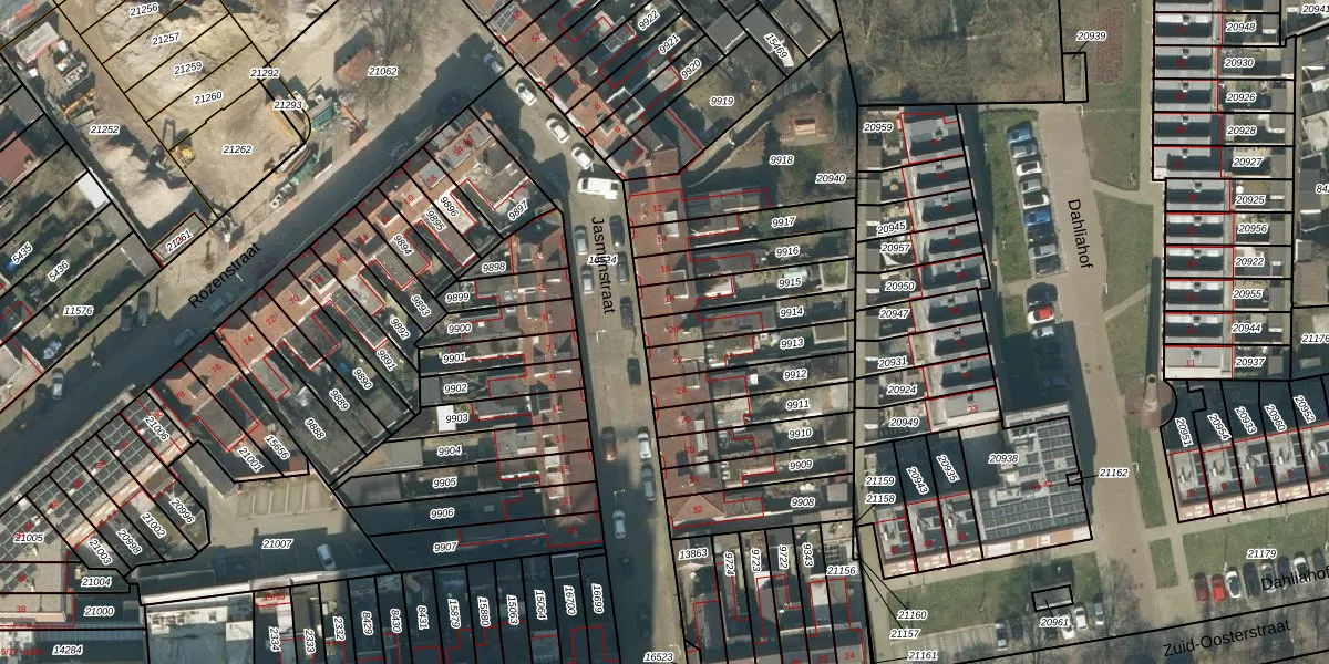 Jasmijnstraat 20 is gelegen op kadastraal perceel TBG01N9914. Deze kadastrale aanduiding is uniek en wordt gebruikt door het Kadaster om eigendomsrechten en andere zakelijke rechten vast te leggen. Het perceel maakt onderdeel uit van de kadastrale gemeente Tilburg.