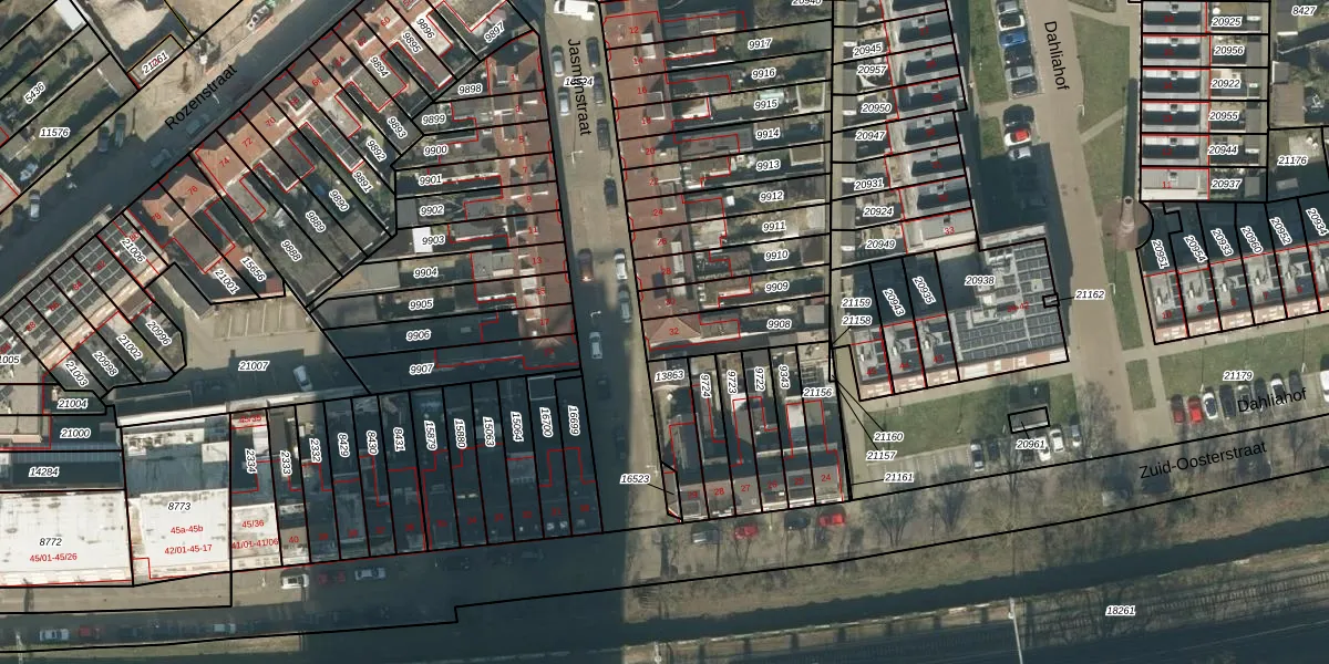 Het perceel waarop Jasmijnstraat 32 staat heeft een oppervlakte van 184 m². Dit is een middelgroot perceel. De perceeloppervlakte wordt geregistreerd door het Kadaster. Gedetailleerde informatie over de maten van dit perceel kunt u vinden in het rapport Kadastrale kaart met maatvoering van Jasmijnstraat 32.