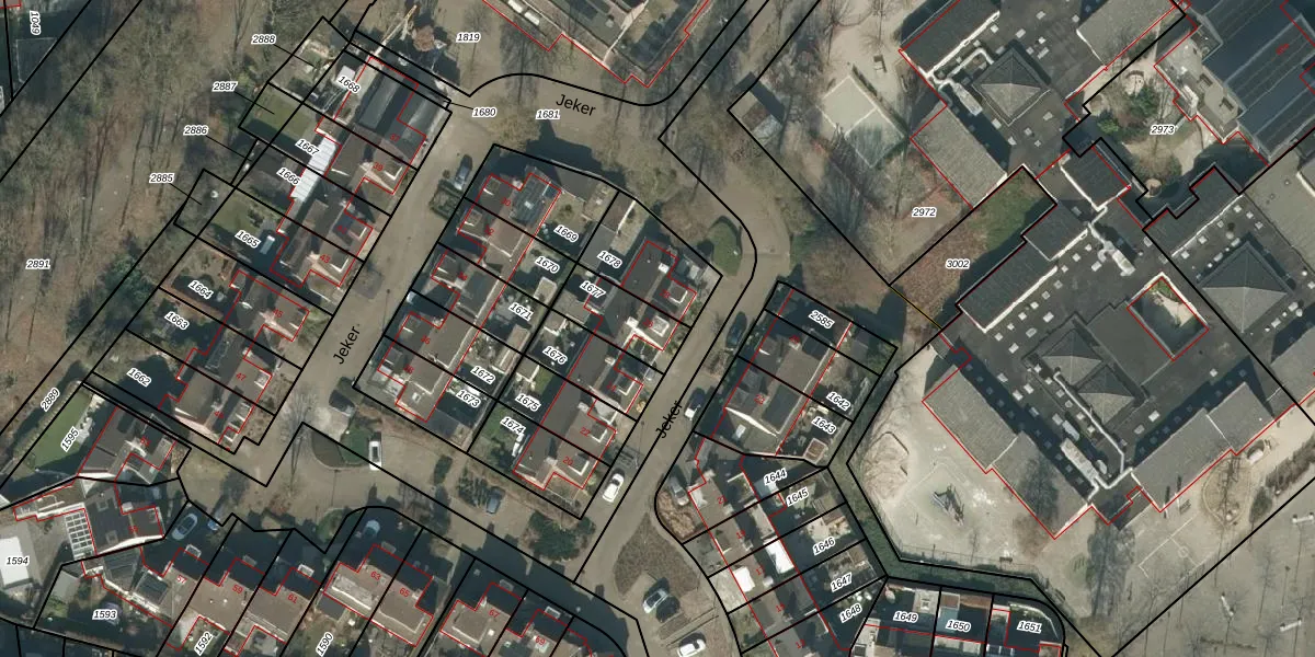 Het perceel waarop Jeker 26 staat heeft een oppervlakte van 162 m². Dit is een middelgroot perceel. De perceeloppervlakte wordt geregistreerd door het Kadaster. Gedetailleerde informatie over de maten van dit perceel kunt u vinden in het rapport Kadastrale kaart met maatvoering van Jeker 26.