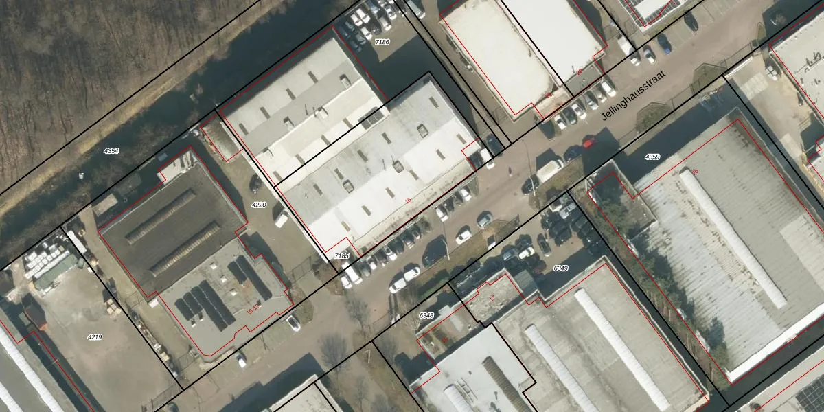Jellinghausstraat 16 is gelegen op kadastraal perceel TBG01F7185. Deze kadastrale aanduiding is uniek en wordt gebruikt door het Kadaster om eigendomsrechten en andere zakelijke rechten vast te leggen. Het perceel maakt onderdeel uit van de kadastrale gemeente Tilburg.