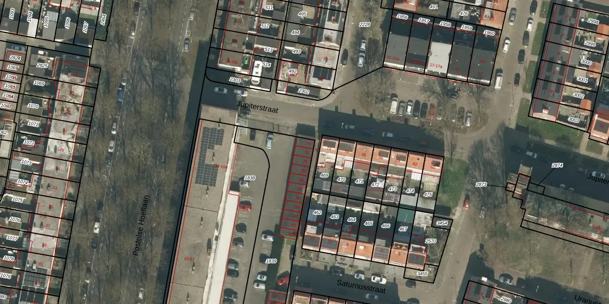 Het perceel waarop Jupiterstraat 76 staat heeft een oppervlakte van 1140 m². Dit is een zeer groot perceel. De perceeloppervlakte wordt geregistreerd door het Kadaster. Gedetailleerde informatie over de maten van dit perceel kunt u vinden in het rapport Kadastrale kaart met maatvoering van Jupiterstraat 76.