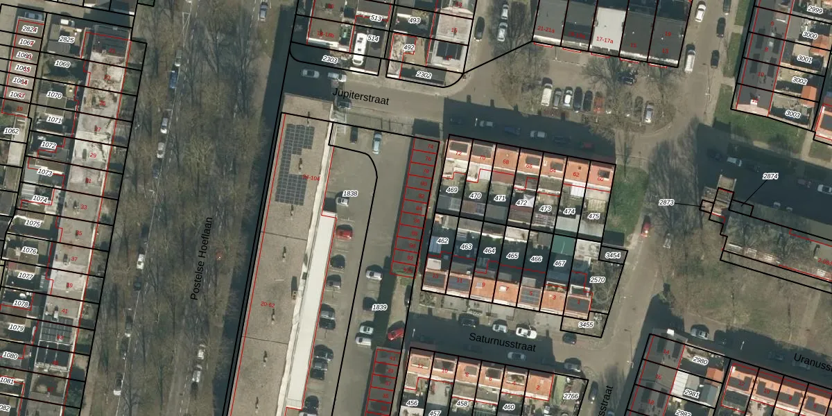 Het perceel waarop Jupiterstraat 84 staat heeft een oppervlakte van 1140 m². Dit is een zeer groot perceel. De perceeloppervlakte wordt geregistreerd door het Kadaster. Gedetailleerde informatie over de maten van dit perceel kunt u vinden in het rapport Kadastrale kaart met maatvoering van Jupiterstraat 84.