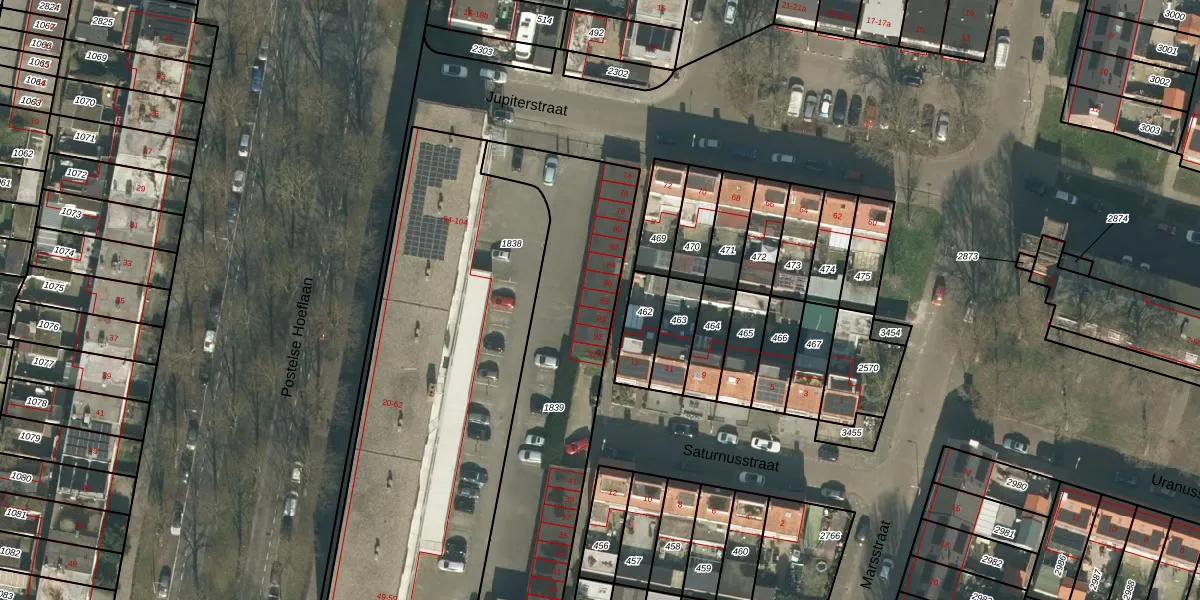 Het perceel waarop Jupiterstraat 88 staat heeft een oppervlakte van 1140 m². Dit is een zeer groot perceel. De perceeloppervlakte wordt geregistreerd door het Kadaster. Gedetailleerde informatie over de maten van dit perceel kunt u vinden in het rapport Kadastrale kaart met maatvoering van Jupiterstraat 88.