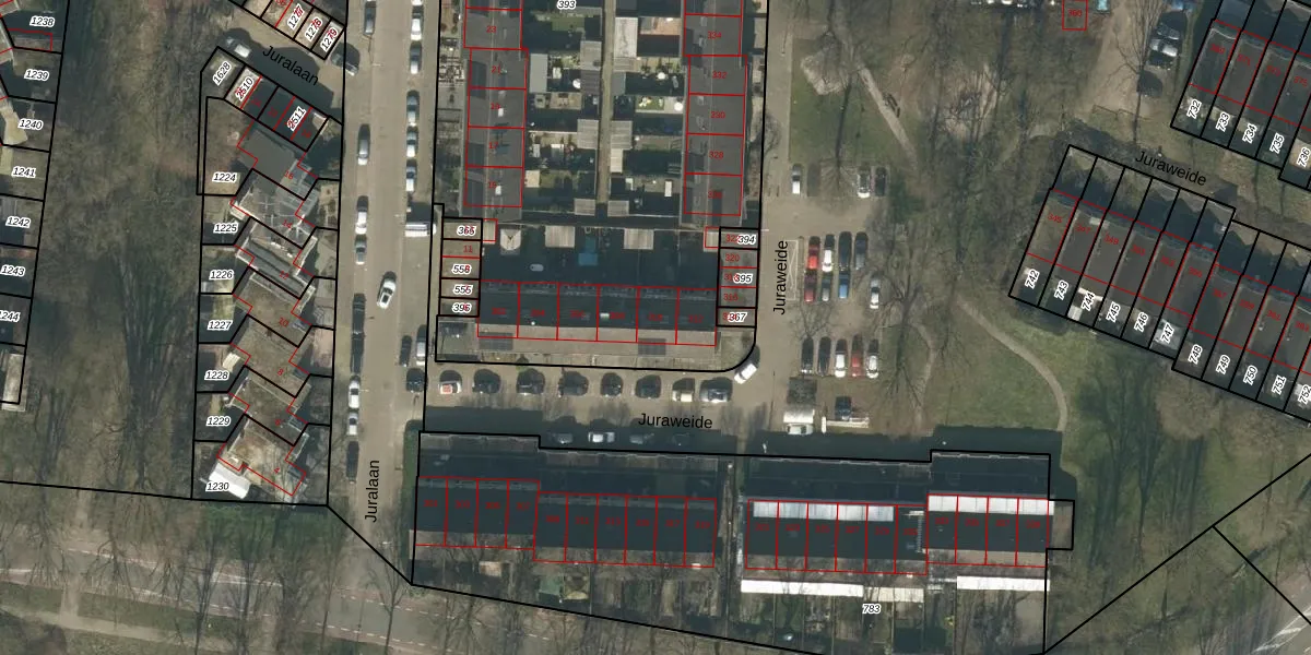 Juraweide 310 is gelegen op kadastraal perceel TBG01W393. Deze kadastrale aanduiding is uniek en wordt gebruikt door het Kadaster om eigendomsrechten en andere zakelijke rechten vast te leggen. Het perceel maakt onderdeel uit van de kadastrale gemeente Tilburg.