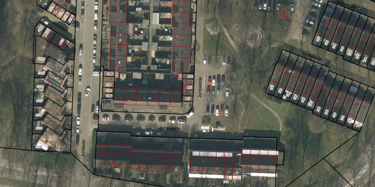Juraweide 316 is gelegen op kadastraal perceel TBG01W395. Deze kadastrale aanduiding is uniek en wordt gebruikt door het Kadaster om eigendomsrechten en andere zakelijke rechten vast te leggen. Het perceel maakt onderdeel uit van de kadastrale gemeente Tilburg.