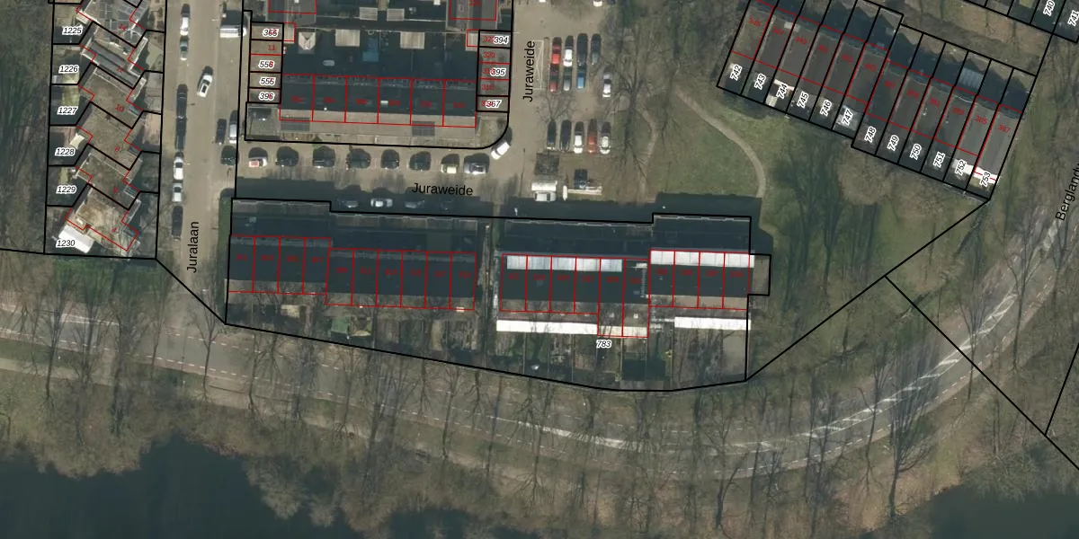 Juraweide 323 is gelegen op kadastraal perceel TBG01W783. Deze kadastrale aanduiding is uniek en wordt gebruikt door het Kadaster om eigendomsrechten en andere zakelijke rechten vast te leggen. Het perceel maakt onderdeel uit van de kadastrale gemeente Tilburg.