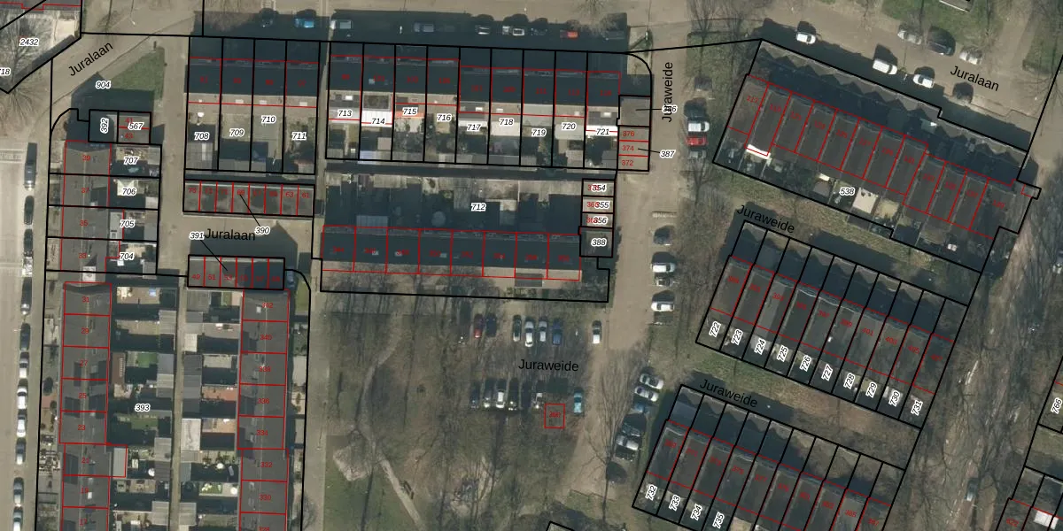 Juraweide 356 is gelegen op kadastraal perceel TBG01W712. Deze kadastrale aanduiding is uniek en wordt gebruikt door het Kadaster om eigendomsrechten en andere zakelijke rechten vast te leggen. Het perceel maakt onderdeel uit van de kadastrale gemeente Tilburg.