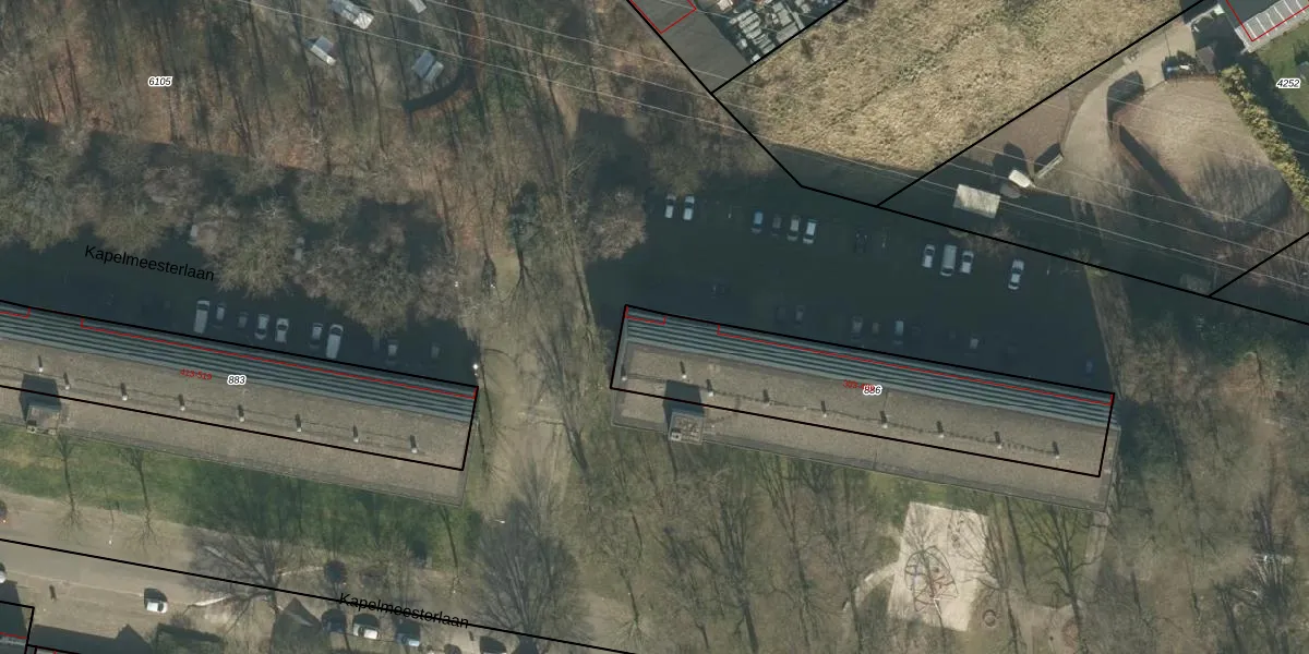 Het perceel waarop Kapelmeesterlaan 313 staat heeft een oppervlakte van 978 m². Dit is een groot perceel. De perceeloppervlakte wordt geregistreerd door het Kadaster. Gedetailleerde informatie over de maten van dit perceel kunt u vinden in het rapport Kadastrale kaart met maatvoering van Kapelmeesterlaan 313.