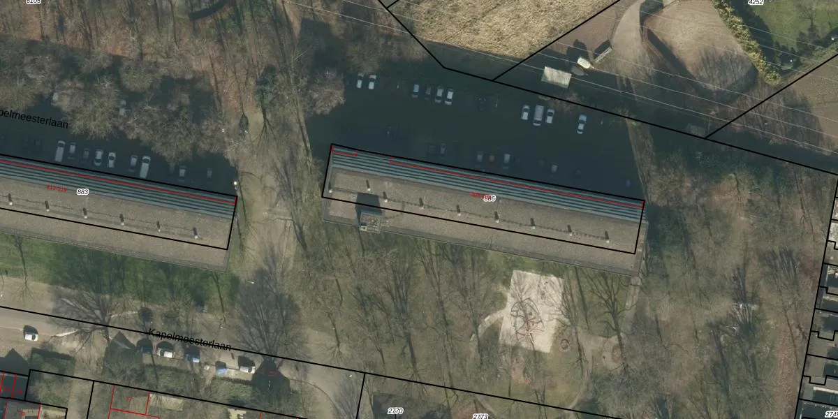 Het perceel waarop Kapelmeesterlaan 319 staat heeft een oppervlakte van 978 m². Dit is een groot perceel. De perceeloppervlakte wordt geregistreerd door het Kadaster. Gedetailleerde informatie over de maten van dit perceel kunt u vinden in het rapport Kadastrale kaart met maatvoering van Kapelmeesterlaan 319.