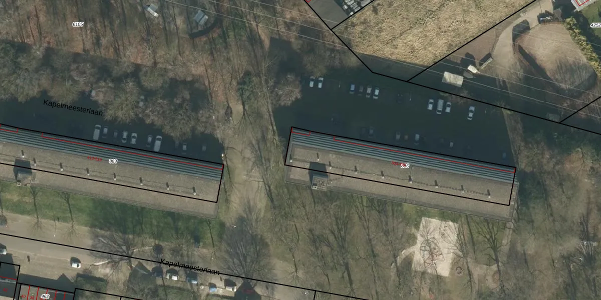 Het perceel waarop Kapelmeesterlaan 363 staat heeft een oppervlakte van 978 m². Dit is een groot perceel. De perceeloppervlakte wordt geregistreerd door het Kadaster. Gedetailleerde informatie over de maten van dit perceel kunt u vinden in het rapport Kadastrale kaart met maatvoering van Kapelmeesterlaan 363.