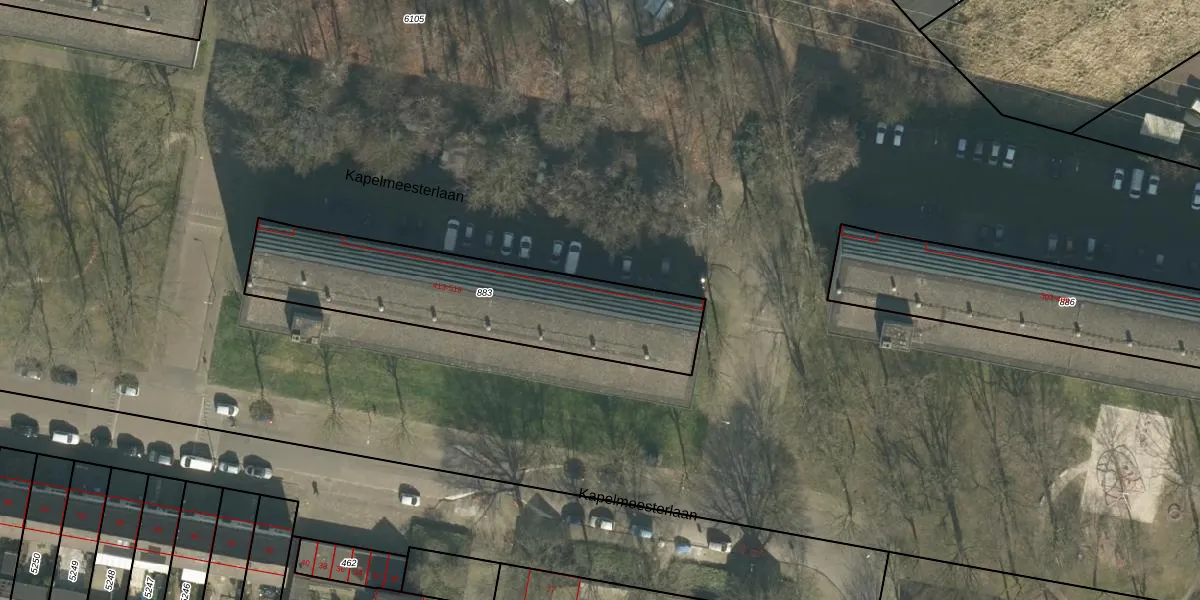 Het perceel waarop Kapelmeesterlaan 413 staat heeft een oppervlakte van 978 m². Dit is een groot perceel. De perceeloppervlakte wordt geregistreerd door het Kadaster. Gedetailleerde informatie over de maten van dit perceel kunt u vinden in het rapport Kadastrale kaart met maatvoering van Kapelmeesterlaan 413.