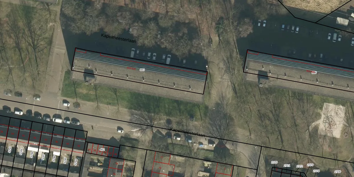 Het perceel waarop Kapelmeesterlaan 437 staat heeft een oppervlakte van 978 m². Dit is een groot perceel. De perceeloppervlakte wordt geregistreerd door het Kadaster. Gedetailleerde informatie over de maten van dit perceel kunt u vinden in het rapport Kadastrale kaart met maatvoering van Kapelmeesterlaan 437.