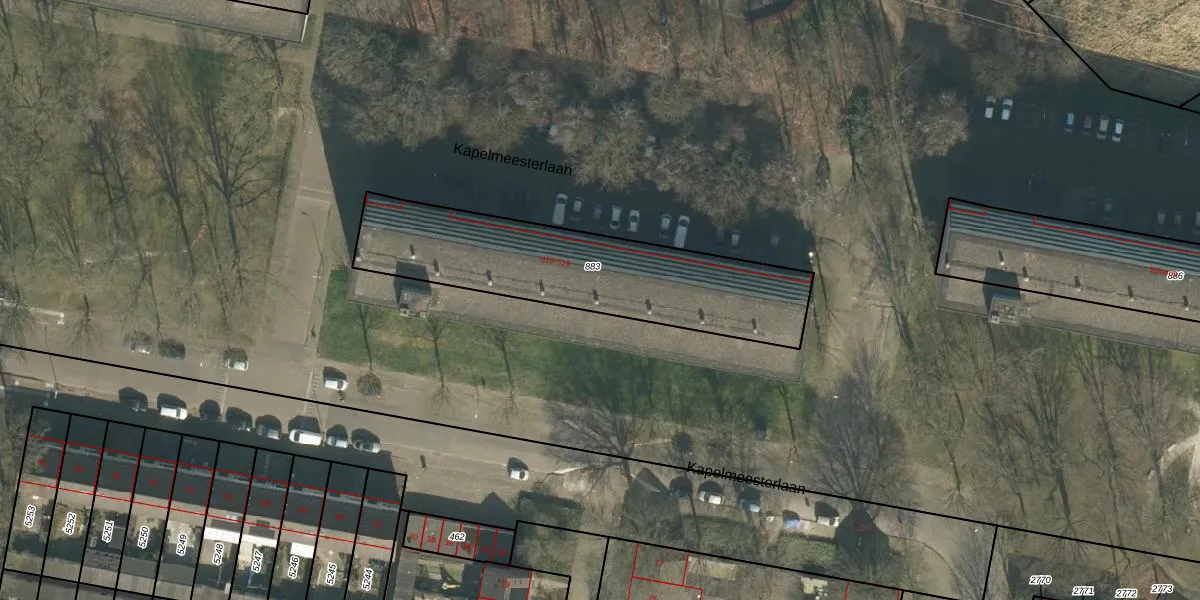 Het perceel waarop Kapelmeesterlaan 449 staat heeft een oppervlakte van 978 m². Dit is een groot perceel. De perceeloppervlakte wordt geregistreerd door het Kadaster. Gedetailleerde informatie over de maten van dit perceel kunt u vinden in het rapport Kadastrale kaart met maatvoering van Kapelmeesterlaan 449.