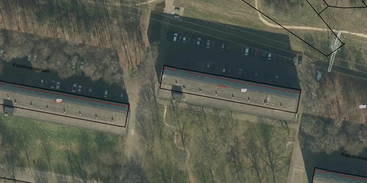Het perceel waarop Kapelmeesterlaan 537 staat heeft een oppervlakte van 978 m². Dit is een groot perceel. De perceeloppervlakte wordt geregistreerd door het Kadaster. Gedetailleerde informatie over de maten van dit perceel kunt u vinden in het rapport Kadastrale kaart met maatvoering van Kapelmeesterlaan 537.