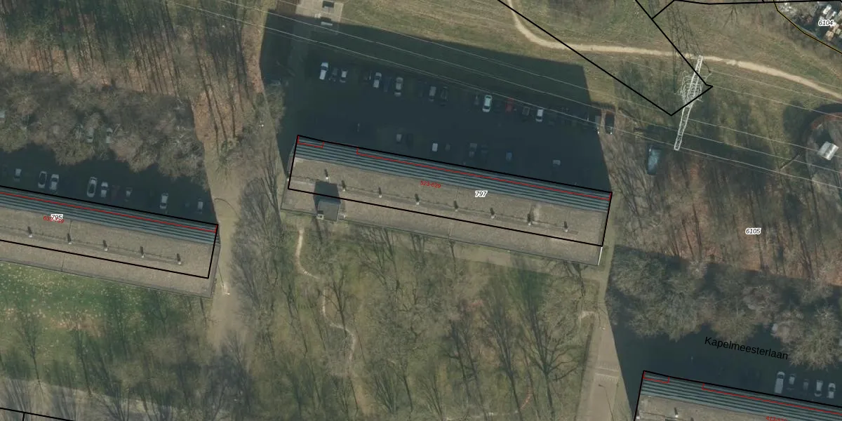 Het perceel waarop Kapelmeesterlaan 541 staat heeft een oppervlakte van 978 m². Dit is een groot perceel. De perceeloppervlakte wordt geregistreerd door het Kadaster. Gedetailleerde informatie over de maten van dit perceel kunt u vinden in het rapport Kadastrale kaart met maatvoering van Kapelmeesterlaan 541.