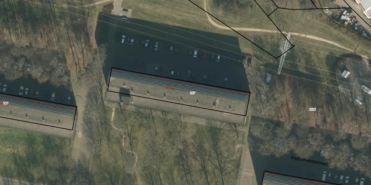 Het perceel waarop Kapelmeesterlaan 607 staat heeft een oppervlakte van 978 m². Dit is een groot perceel. De perceeloppervlakte wordt geregistreerd door het Kadaster. Gedetailleerde informatie over de maten van dit perceel kunt u vinden in het rapport Kadastrale kaart met maatvoering van Kapelmeesterlaan 607.