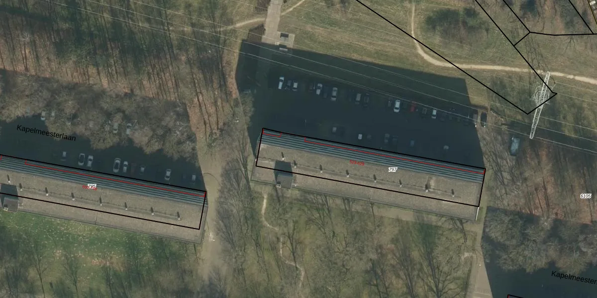 Het perceel waarop Kapelmeesterlaan 617 staat heeft een oppervlakte van 978 m². Dit is een groot perceel. De perceeloppervlakte wordt geregistreerd door het Kadaster. Gedetailleerde informatie over de maten van dit perceel kunt u vinden in het rapport Kadastrale kaart met maatvoering van Kapelmeesterlaan 617.