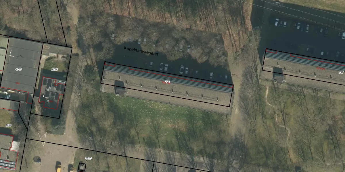 Het perceel waarop Kapelmeesterlaan 701 staat heeft een oppervlakte van 978 m². Dit is een groot perceel. De perceeloppervlakte wordt geregistreerd door het Kadaster. Gedetailleerde informatie over de maten van dit perceel kunt u vinden in het rapport Kadastrale kaart met maatvoering van Kapelmeesterlaan 701.