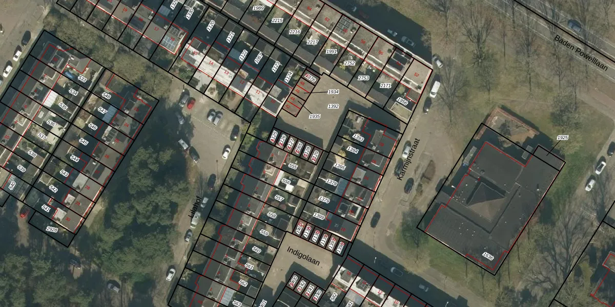 Het perceel waarop Karmijnstraat 32 staat heeft een oppervlakte van 16 m². Dit is een klein perceel. De perceeloppervlakte wordt geregistreerd door het Kadaster. Gedetailleerde informatie over de maten van dit perceel kunt u vinden in het rapport Kadastrale kaart met maatvoering van Karmijnstraat 32.
