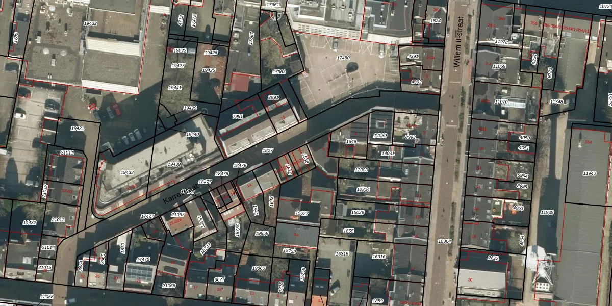 Het perceel waarop Karrestraat 12 staat heeft een oppervlakte van 53 m². Dit is een klein perceel. De perceeloppervlakte wordt geregistreerd door het Kadaster. Gedetailleerde informatie over de maten van dit perceel kunt u vinden in het rapport Kadastrale kaart met maatvoering van Karrestraat 12.