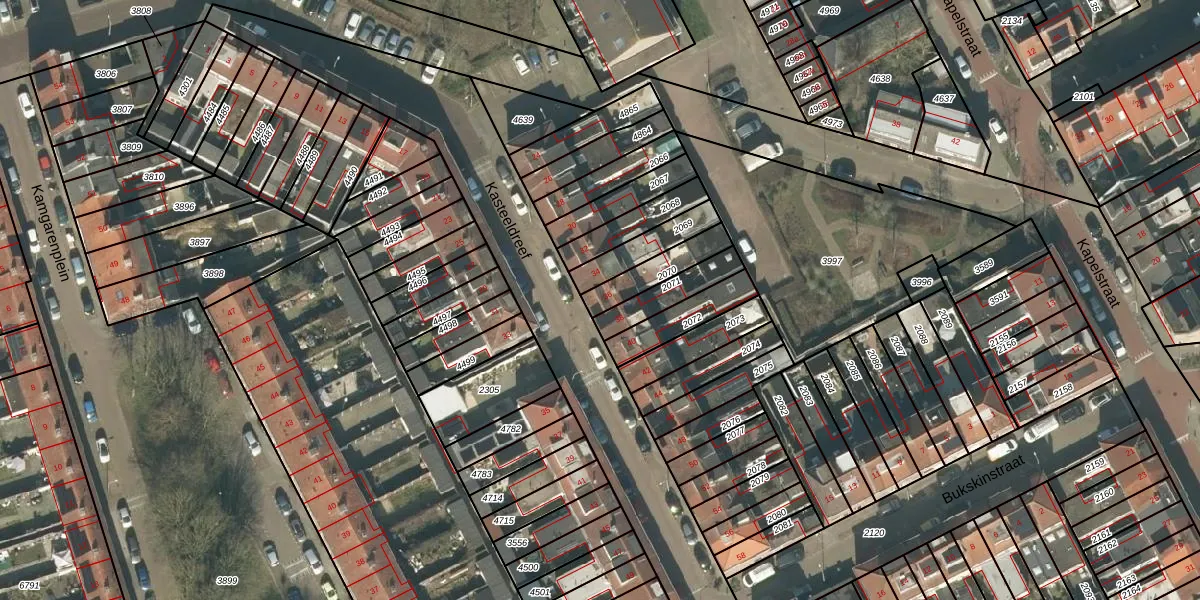 Kasteeldreef 36 is gelegen op kadastraal perceel TBG01O2070. Deze kadastrale aanduiding is uniek en wordt gebruikt door het Kadaster om eigendomsrechten en andere zakelijke rechten vast te leggen. Het perceel maakt onderdeel uit van de kadastrale gemeente Tilburg.