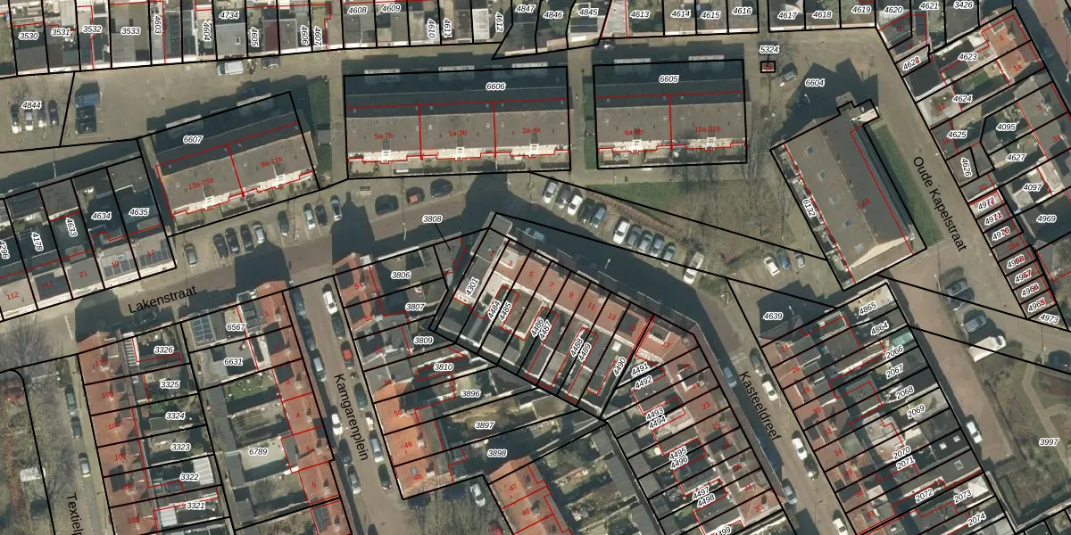 Kasteeldreef 5 is gelegen op kadastraal perceel TBG01O4485. Deze kadastrale aanduiding is uniek en wordt gebruikt door het Kadaster om eigendomsrechten en andere zakelijke rechten vast te leggen. Het perceel maakt onderdeel uit van de kadastrale gemeente Tilburg.