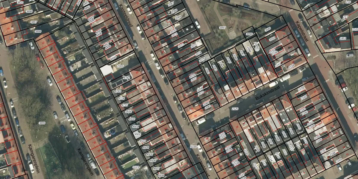 Kasteeldreef 50 is gelegen op kadastraal perceel TBG01O2077. Deze kadastrale aanduiding is uniek en wordt gebruikt door het Kadaster om eigendomsrechten en andere zakelijke rechten vast te leggen. Het perceel maakt onderdeel uit van de kadastrale gemeente Tilburg.